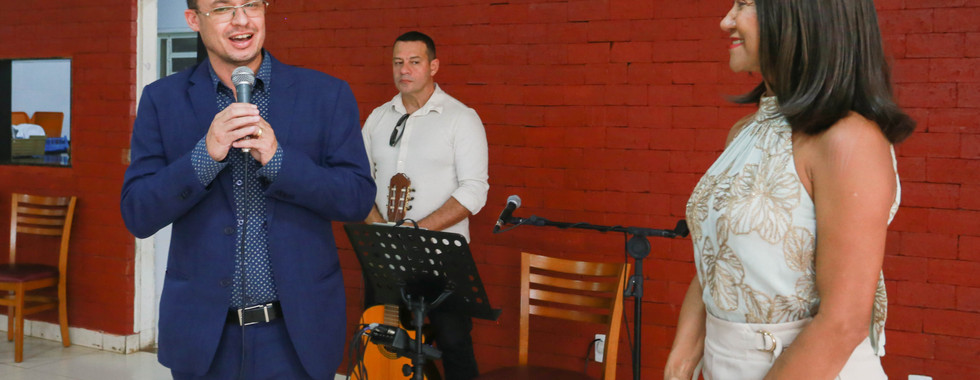 Após a solenidade a presidente e autoridades participaram do corte da fita para dar início ao Buffet do almoço, que atendeu hoje 300 pessoas aproximadamente.